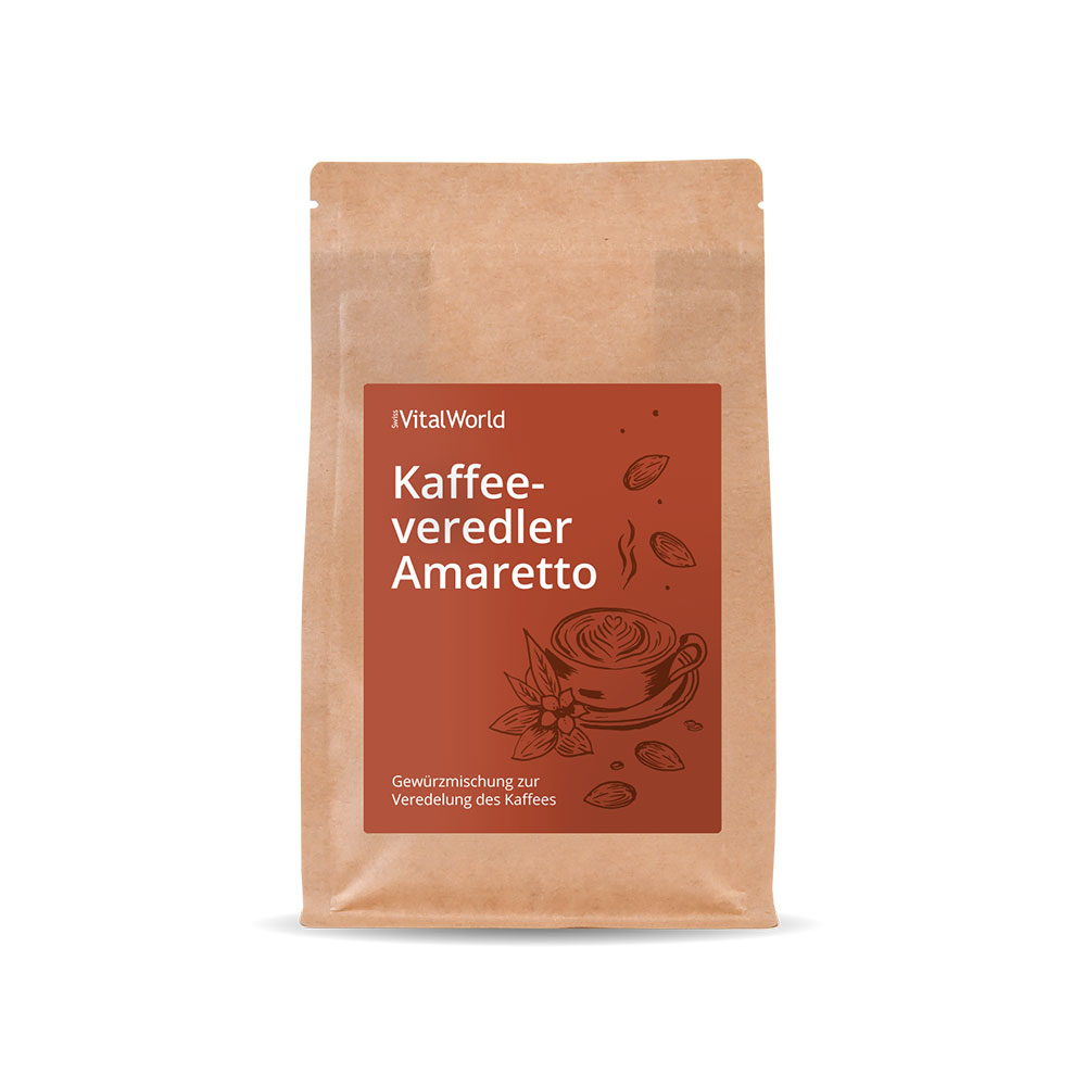 Erleben Sie mit dem Kaffeeveredler Amaretto von SwissVitalWorld eine neue Dimension des Kaffeegenusses. Inspiriert von den jahrhundertealten Traditionen des Orients, in denen Gewürze und Kräuter den Kaffee verfeinern, haben wir eine einzigartige Rezeptur entwickelt, welche dem Kaffee eine intensive Note von Amaretto verleiht und ihn zu einem ausgewogenen Genusserlebnis macht. Unser Kaffeeveredler macht den Kaffee wesentlich bekömmlicher, während das wachmachende Koffein natürlich erhalten bleibt. Geniessen Sie jede Tasse auf eine neue Art und Weise.